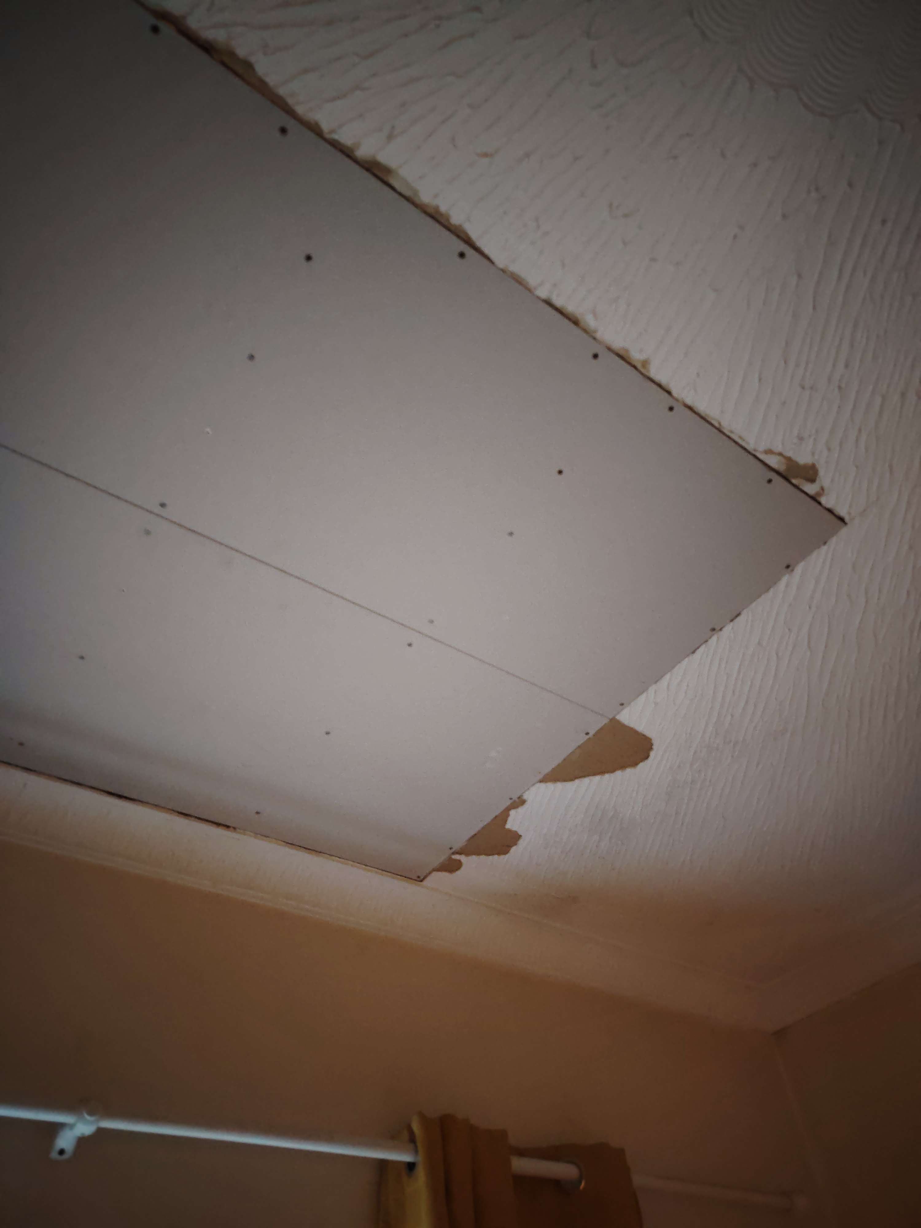 Look closely at the ceiling and you’ll notice where damp has blown it and cracked it too, most notably in the far and near right hand corners. At some point they are going to fall in. Oh and check the far left too for the crack that's showing up there